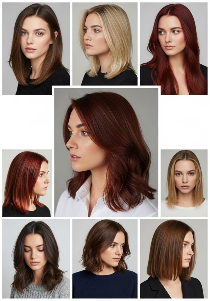 Medium-length hair is highly versatile and works well with a variety of hair colors. Soft balayage, caramel tones, and subtle highlights create a balanced and stylish appearance. This length is ideal for smooth color blending.